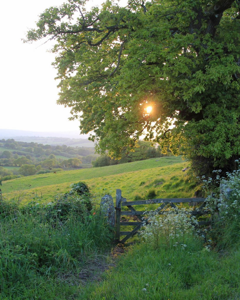 A walk in the countryside, with bees and butterflies mingling amongst wildflowers and the blue sky. A gentle breeze brings the smell of freshly cut grass across rolling green fields. Peonies bloom with a delicate, sweet floral scent. The sound and smell of a gentle stream. Rays of sunshine peek through green leafy trees along a winding path.Â