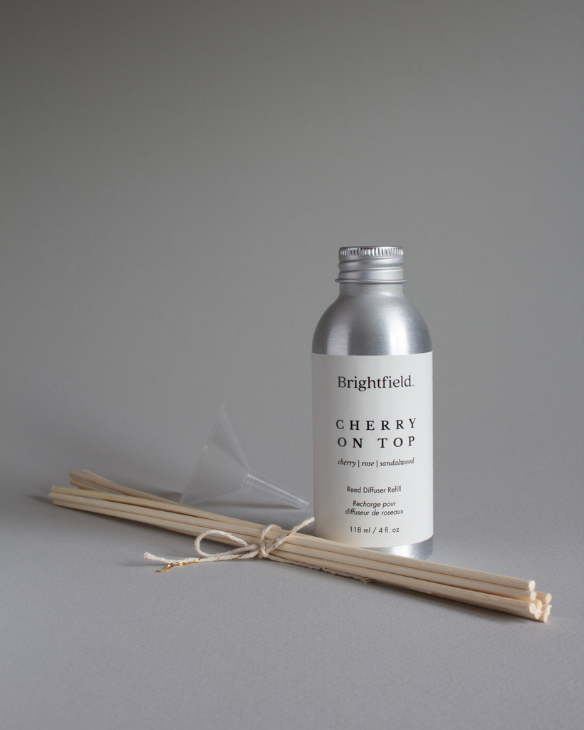 Our Cherry On Top Reed Diffuser Refill Kit helps you easily refill your original Cherry On Top Reed Diffuser bottle. Inspired by a picnic in a secret garden with notes of cherry, rose, almond, and sandalwood.